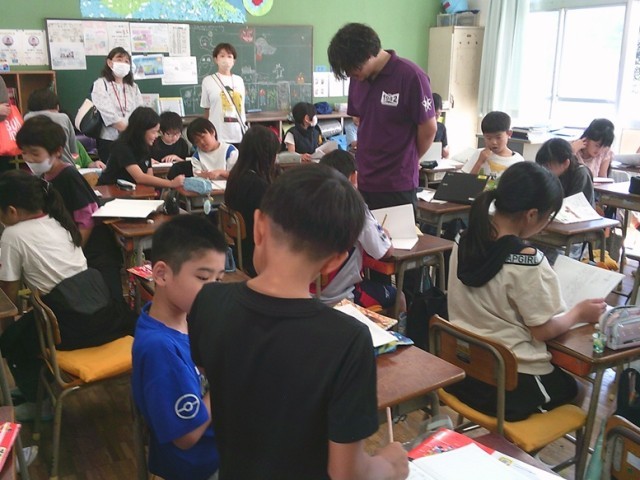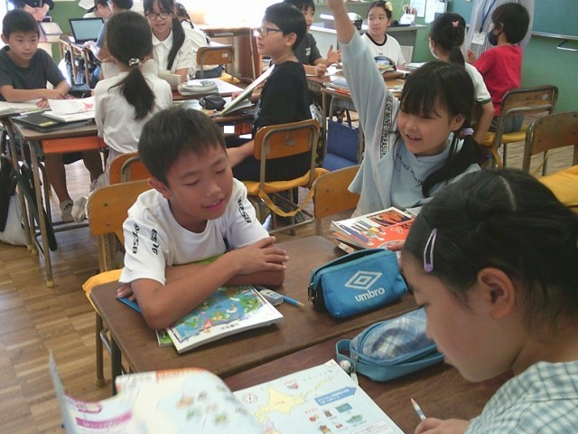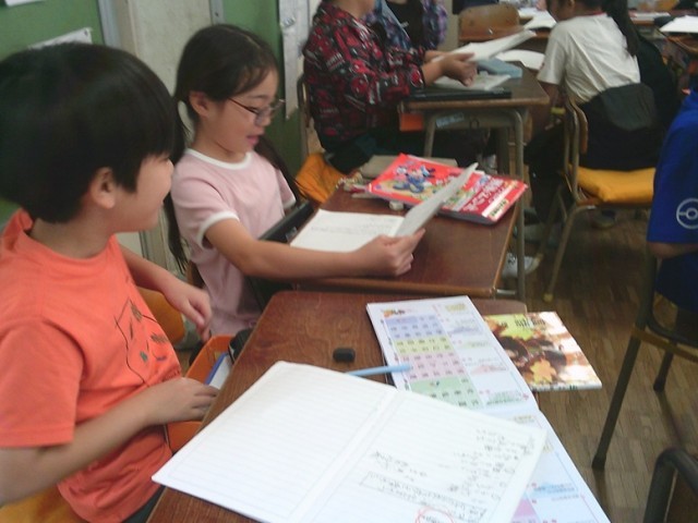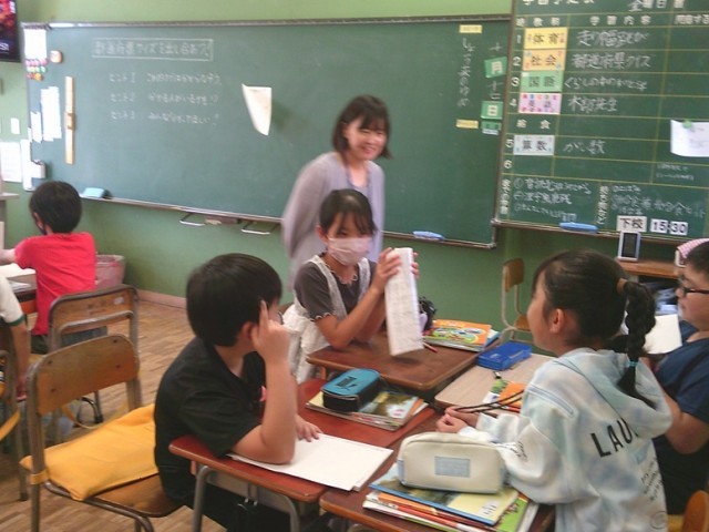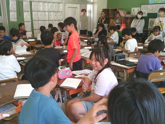 4年生の学習の様子です。両クラスとも集中して学習を進めていました。友達と机を付けての話し合い活動も活発に行っていました。