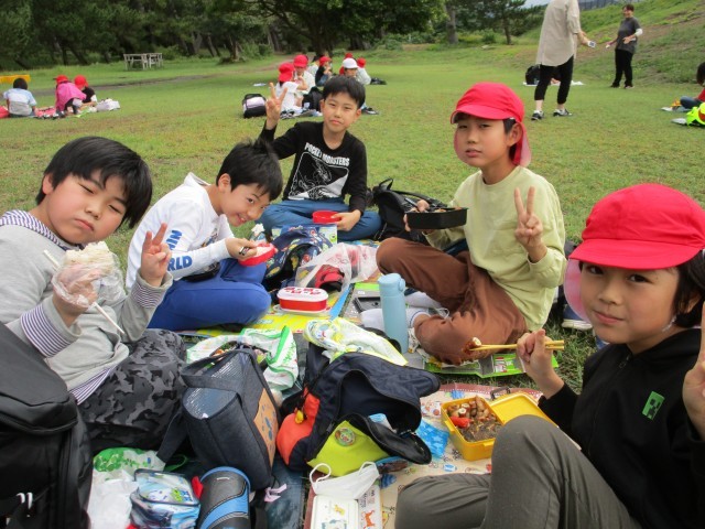 3年生の社会科見学での様子です。お昼ご飯はお弁当です。みんなで美味しくいただきました。