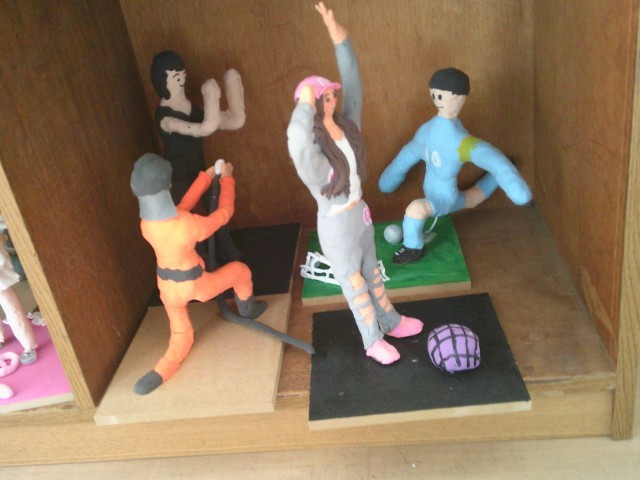 6年生は図工で立体作品「未来のわたし」を制作中です。針金を芯材として形を作り、紙粘土で肉付け、そして色塗りを行っています。完成までもう少し時間がかかります。