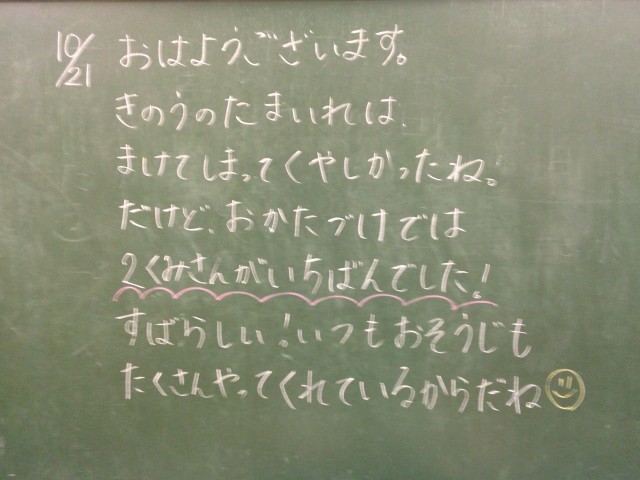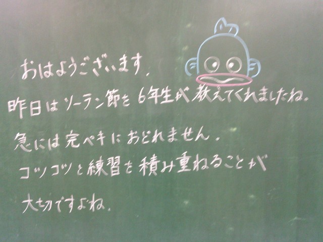 学級担任が黒板メッセージを用意して、子供たちの登校を待ちます。