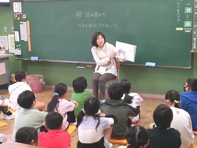 10月21日(火)読み聞かせボランティアの皆様、ありがとうございます。 公開日 2025/10/21 更新日 2025/10/21 最新情報 +5 本日、読み聞かせボランティア「おはなしやさん」の皆様が来校され、子供たちへの本の読み聞かせを行ってくださいました。4年から6年までの子供たちが本の世界に引き込まれました。ボランティアの皆様、ありがとうございました。終了後、校長室にて振り返りと次回の役割分担等について話し合っていました。次回もぜひよろしくお願いします。 いいね(0)