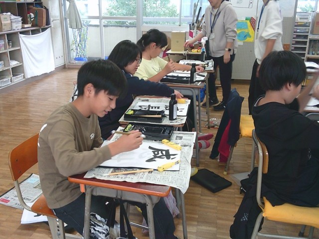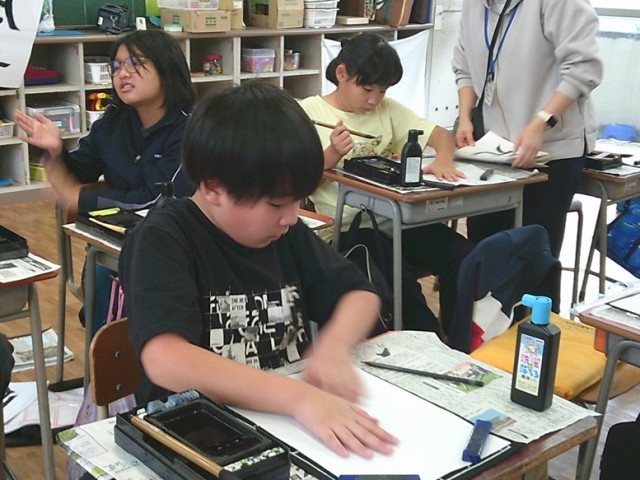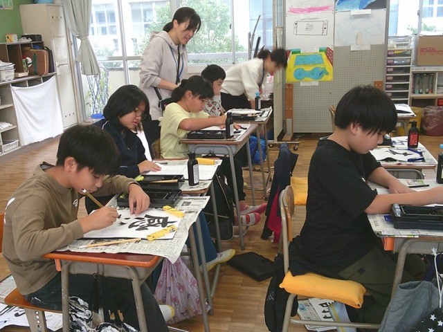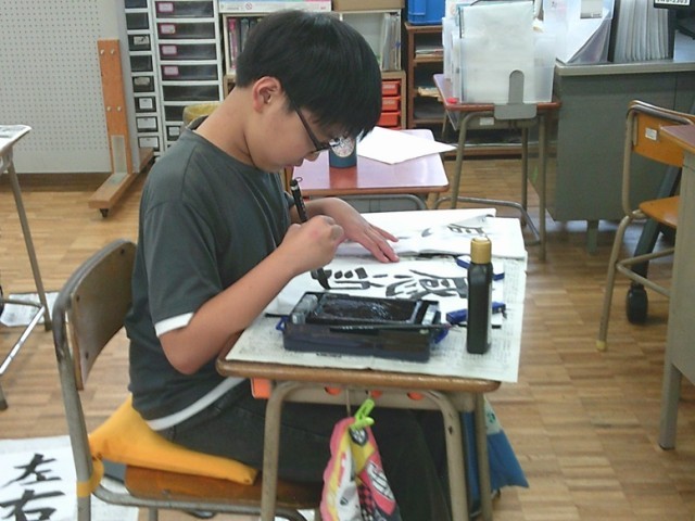 ききょう組の学習の様子です。3年生以上は席書コンクール出品に向け、毛筆の練習をしていました。みんな丁寧な字を書いています。