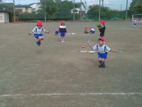 2年生の学習の様子です。3クラスで合同体育を行いました。あいにくの雨でしたので、体育館で徒競走や団体競技での並び方などを確認しました。
