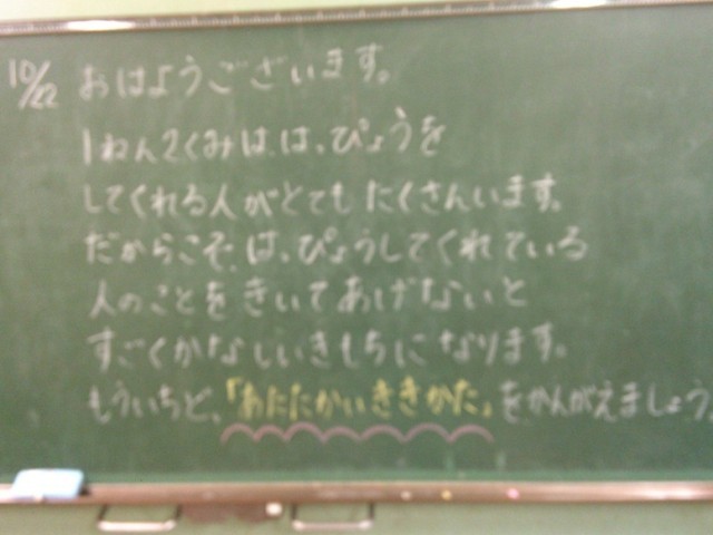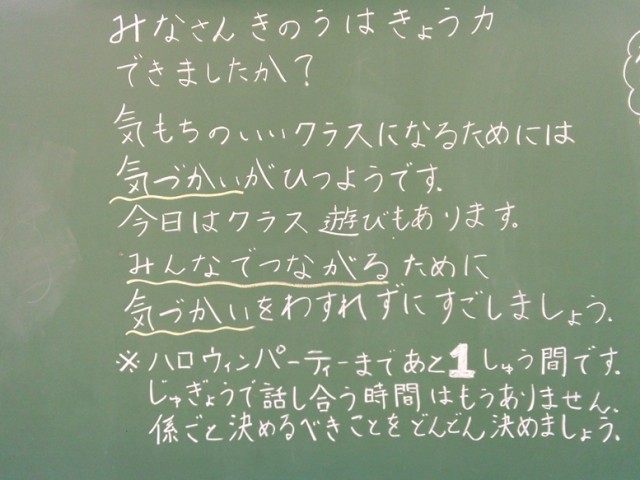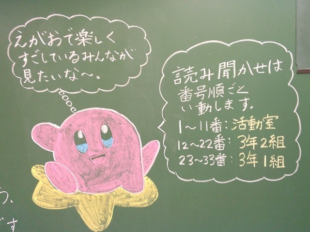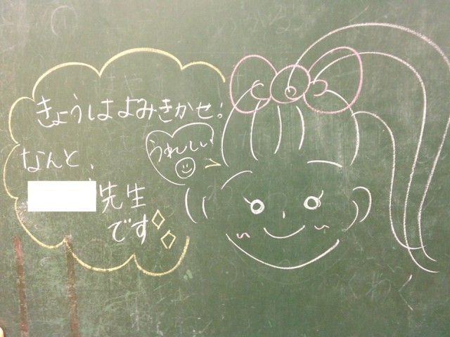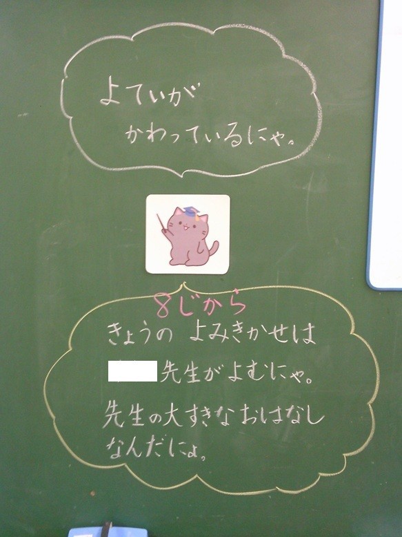 学級担任が黒板メッセージを用意して、子供たちの登校を待ちます。