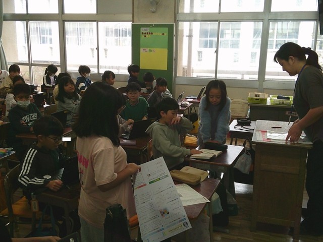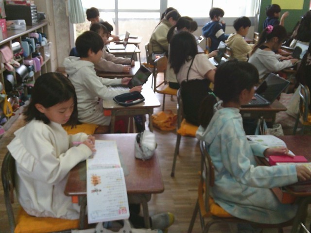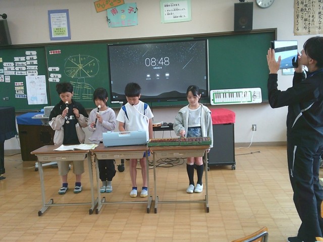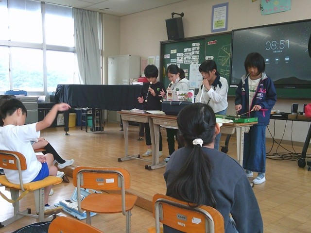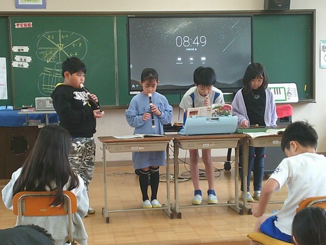 3年生の学習の様子です。両クラスとも主体的に学習を進めていました。音楽では「旋律の特徴を感じ取ろう」というテーマで、鍵盤ハーモニカやリコーダー、打楽器などを使って合奏を楽しみました。