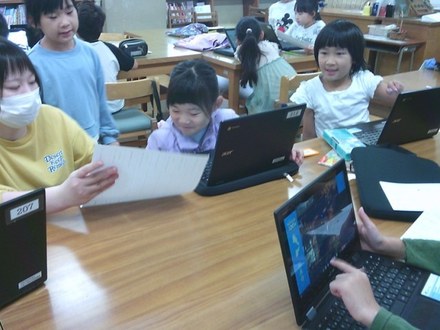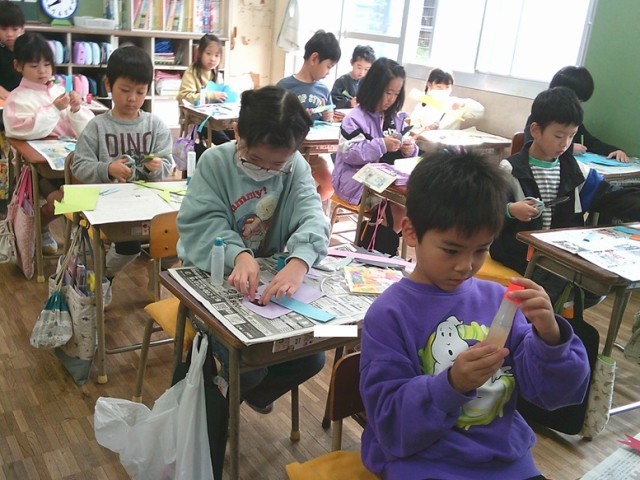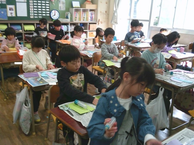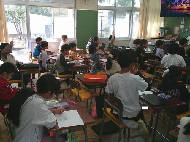 2年生の学習の様子です。3クラスとも学習内容をよく理解した上で活動を進めていました。クロームブックを使って調べ学習をしたり、はさみやのりを使っての立体作品制作をしたりするなど、みんな意欲的に行っていました。