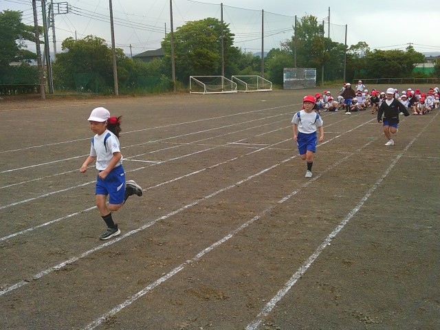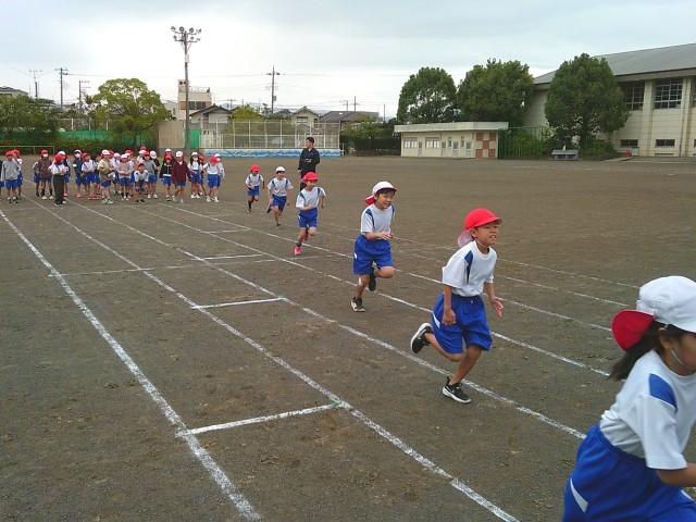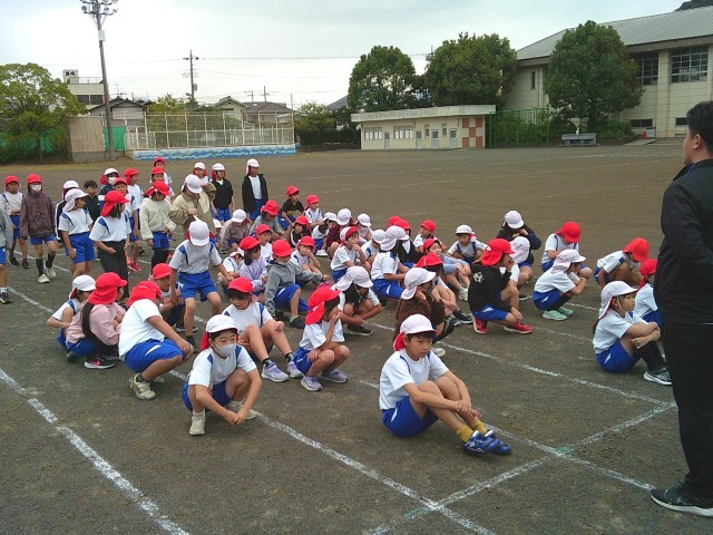 3年生の学習の様子です。両クラス合同で運動会に向けての練習を行いました。今日は、ダービー(団体競技)と個人走の練習をしました。