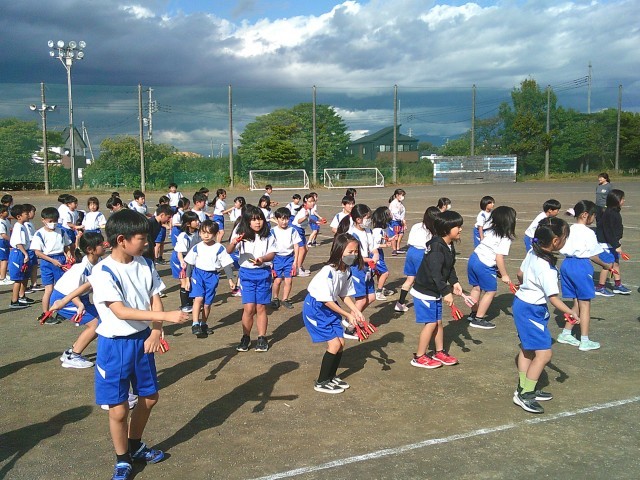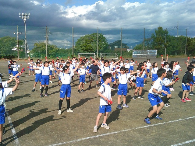 3年生の学習の様子です。3・4年生合同体育を行いました。「輝け!よっちょれ2025」の演技練習を行っていました。