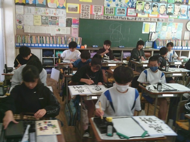 6年生の学習の様子です。両クラスとも主体的に学習を進めました。書写の時間には席書コンクールに向け毛筆で清書をしていました。