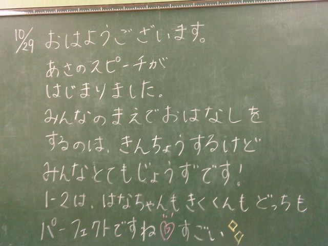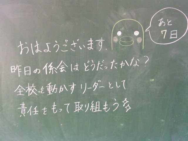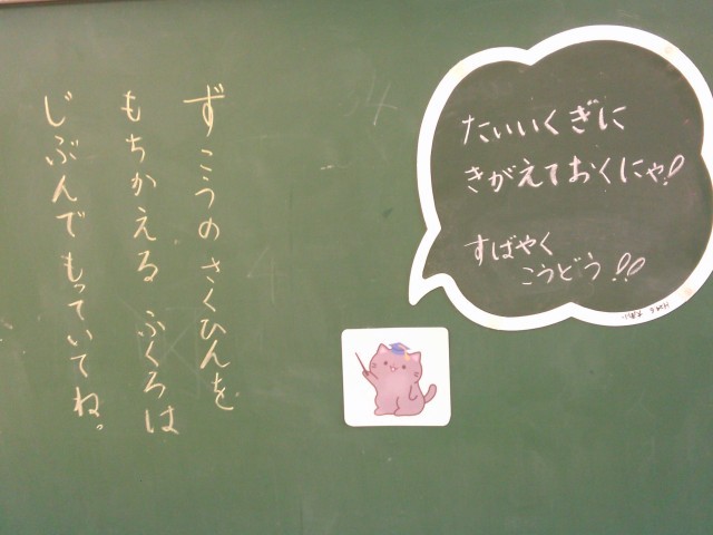 学級担任が黒板メッセージを用意して、子供たちの登校を待ちます。