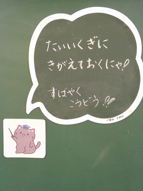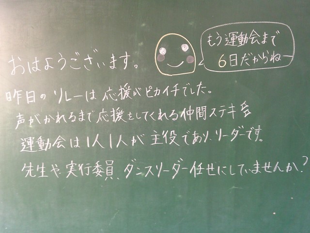 学級担任が黒板メッセージを用意して、子供たちの登校を待ちます。
