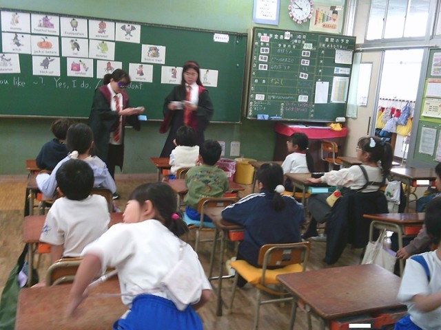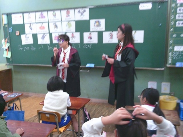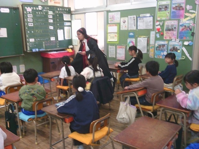 2年生の学習の様子です。両クラスとも意欲的に学習を進めました。言語科「英語の時間」においてハロウィンを教材に言語活動を行いました。教科担任とALTがコスチュームを着て、雰囲気づくりに努めていました。