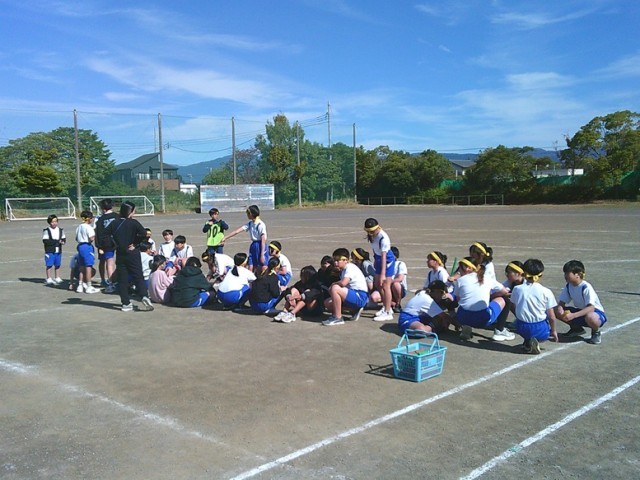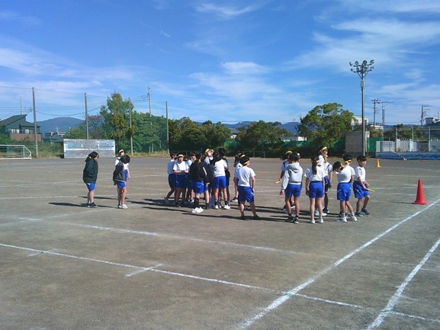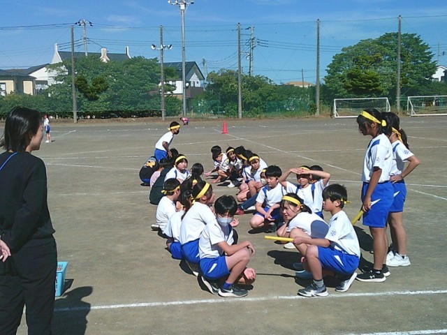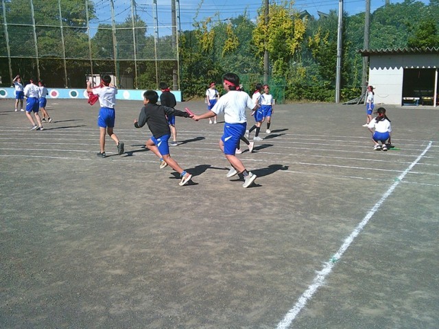 6年生の学習の様子です。両クラスとも運動会に向け、合同で学習をしていました。リレー練習では、バトンの受け渡しについて、精度を高めようと努力していました。