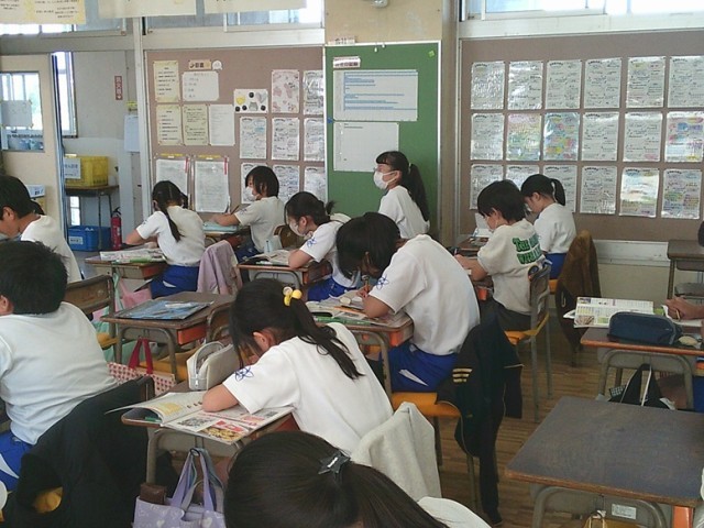 5年生の学習の様子です。3クラスとも落ち着いた雰囲気の中、学習を進めていました。友達と対話をしながら学習課題について理解を深めています。