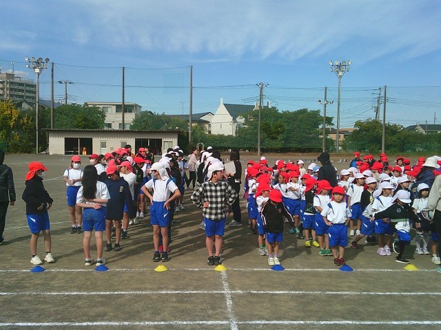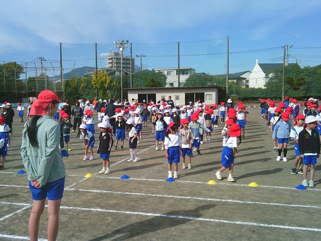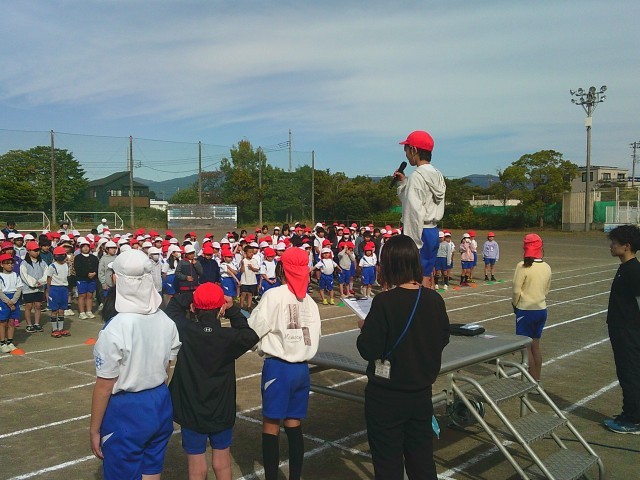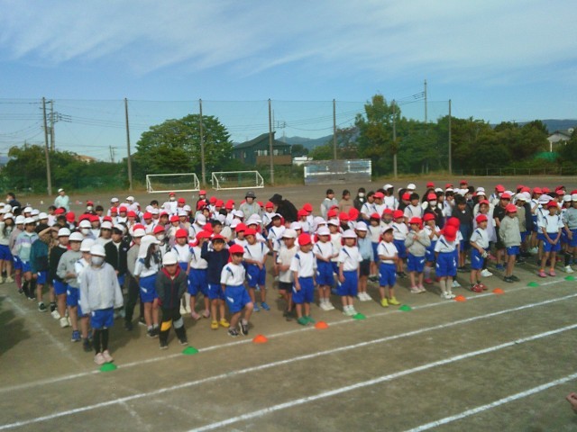 運動会全校練習の様子です。開閉会式の練習では、それぞれの役割ごと、責任もって取り組んでいました。