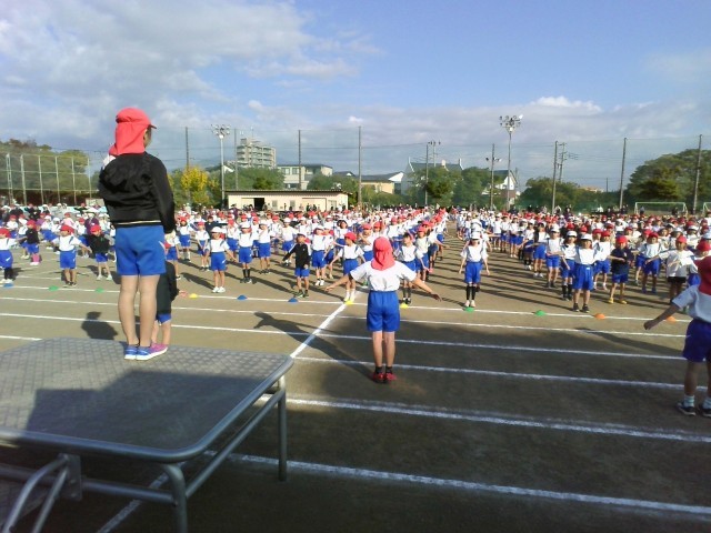 最初に開会式を行いました。そしてラジオ体操と続きます。