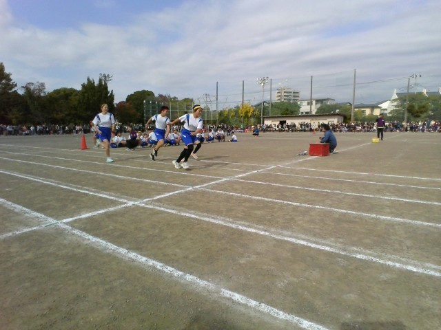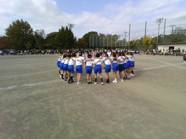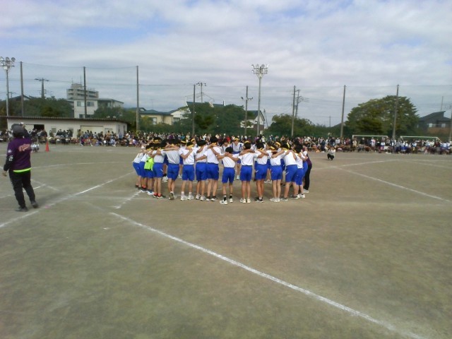 6年生は学級対抗リレーです。小学校生活最後のリレーとなります。まさにラストランです。試合前に円陣を組み、気合を入れました。