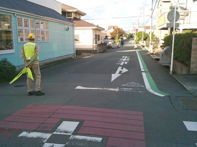 スクールガードの皆様が交差点に立ち、子供たちの登下校の様子を見守ってくださっています。誠にありがとうございます。