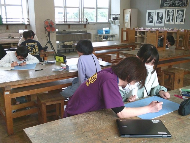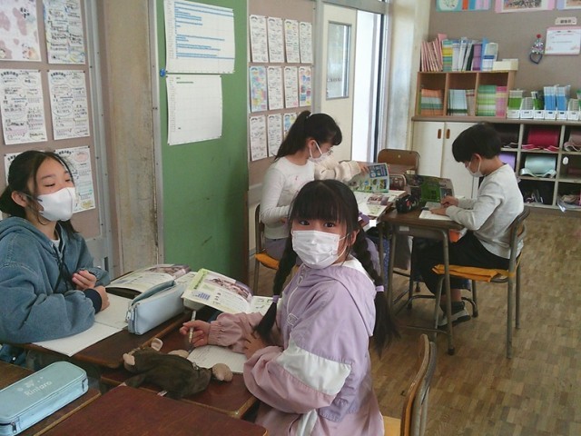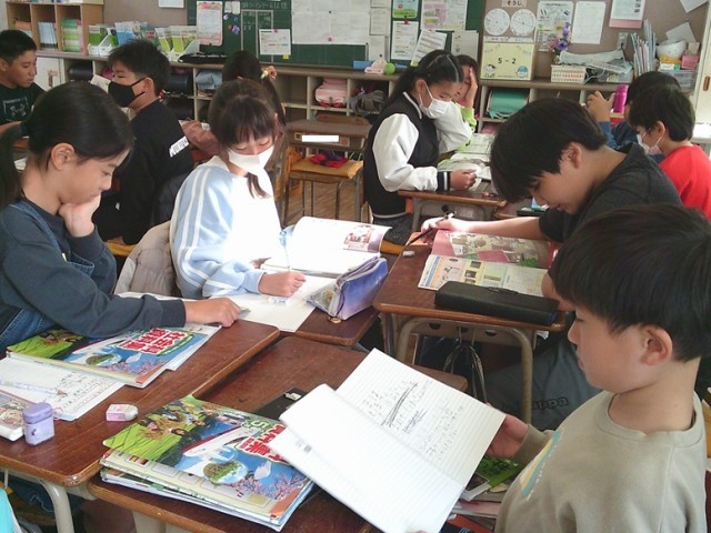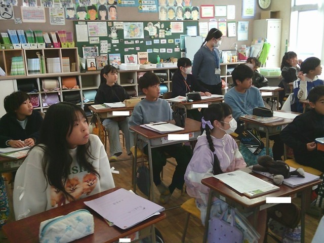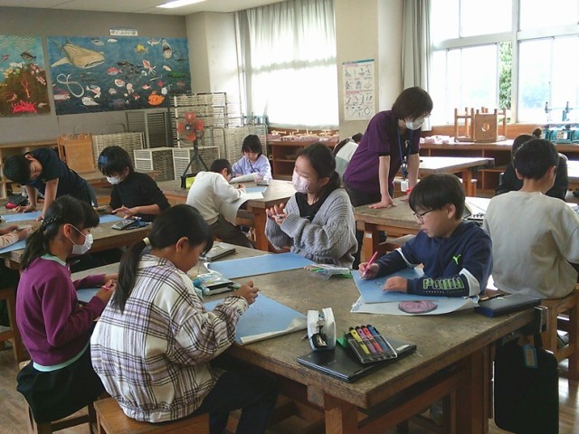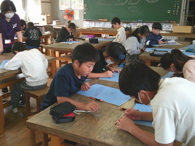 5年生の学習の様子です。3クラスとも集中して学習に取り組んでいました。図工では版画制作を行っています。彫刻刀を使って上手に彫り進めています。