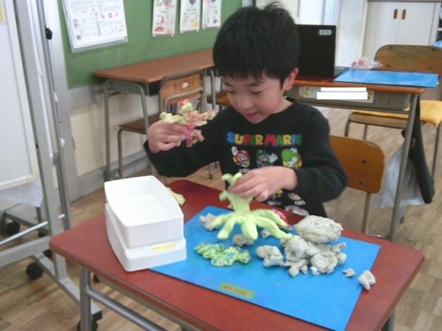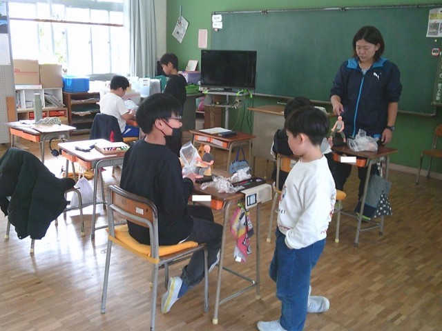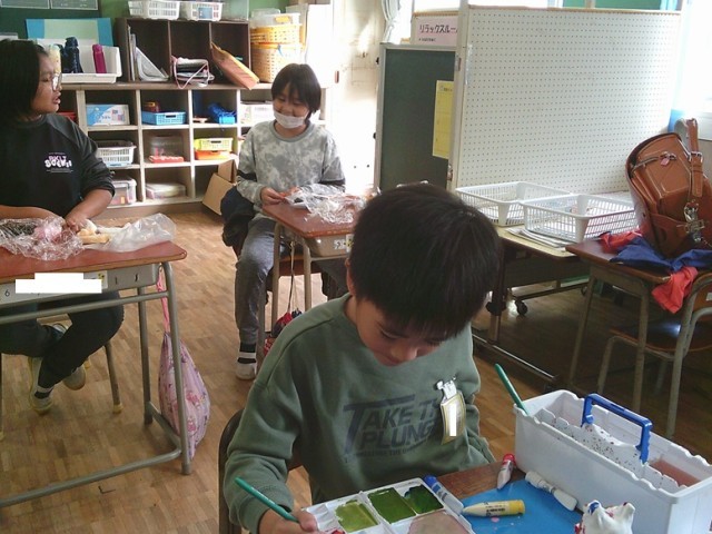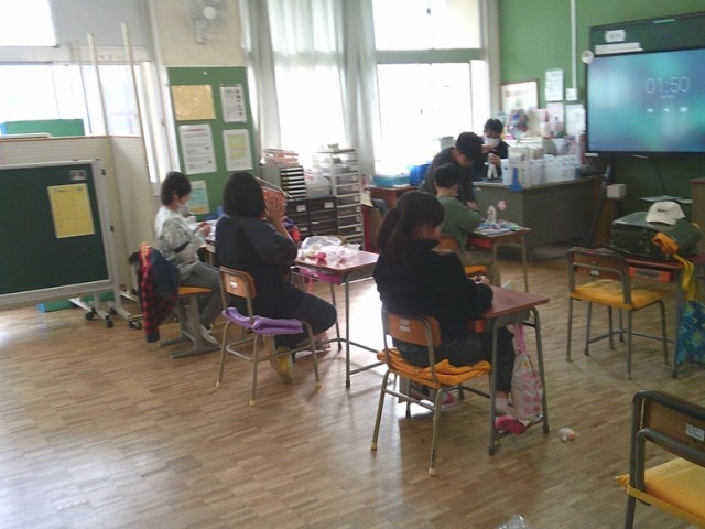 ききょう組の学習の様子です。両クラスとも集中して学習に取り組んでいました。図工で作品づくりを行っています。