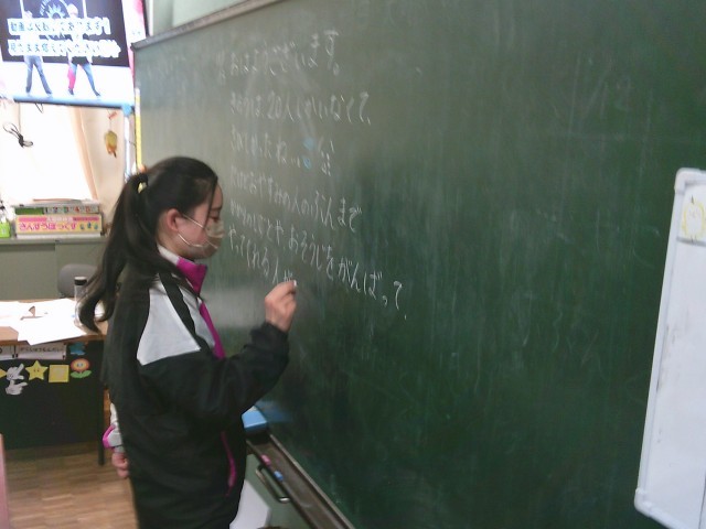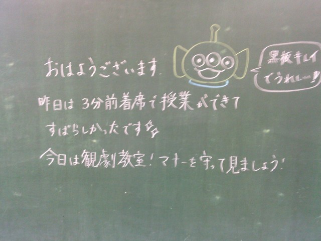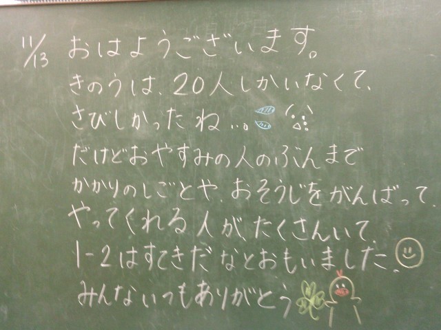 学級担任が黒板メッセージを用意して、子供たちの登校を待ちます。登校した子供たちはメッセージを読んでいます。