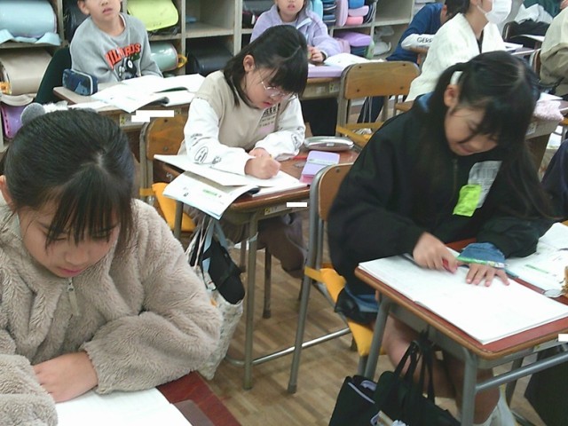 3年生の学習の様子です。国語では「道具のひみつを伝えよう」という説明文について学習を進めていました。本文から読み取ったことを丁寧にまとめていました。