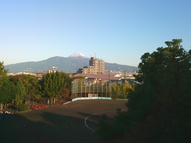 今朝の様子です。上空はブルースカイで澄み切っており、遠くの富士山も望むことができます。