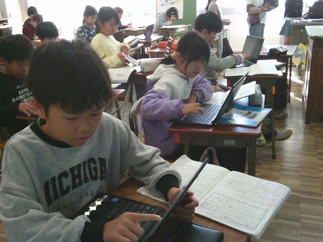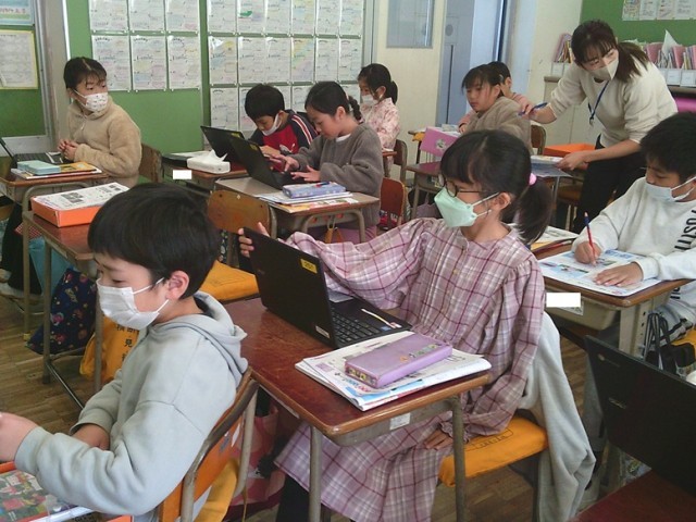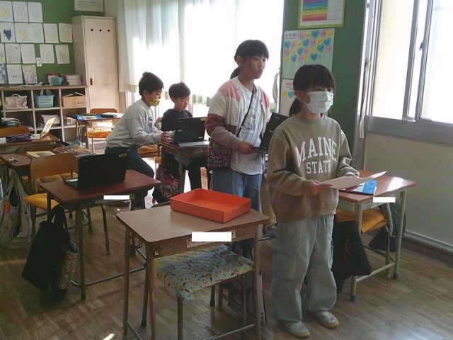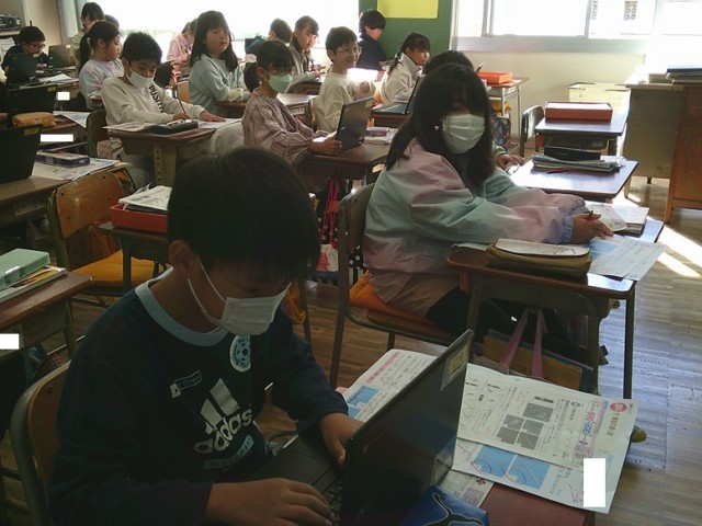 3年生の学習の様子です。両クラスとも真剣に学ぶ姿が素晴らしいです。クロームブックを使いながら、いろいろな情報を活用しています。