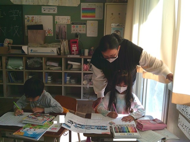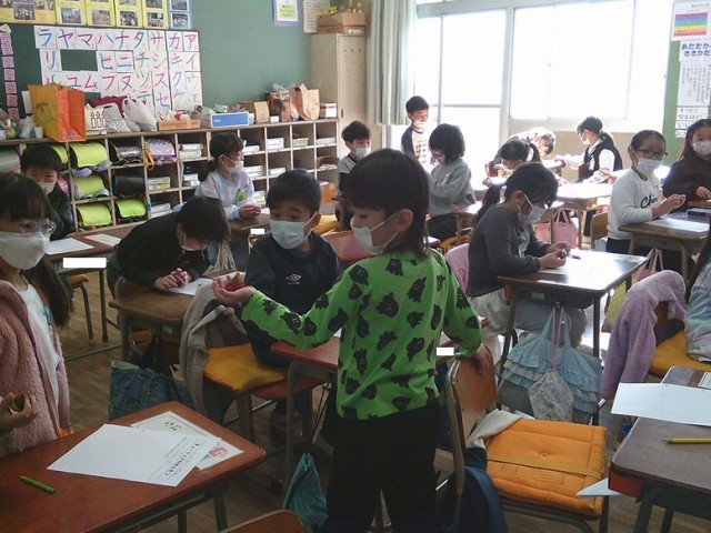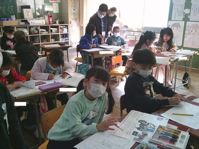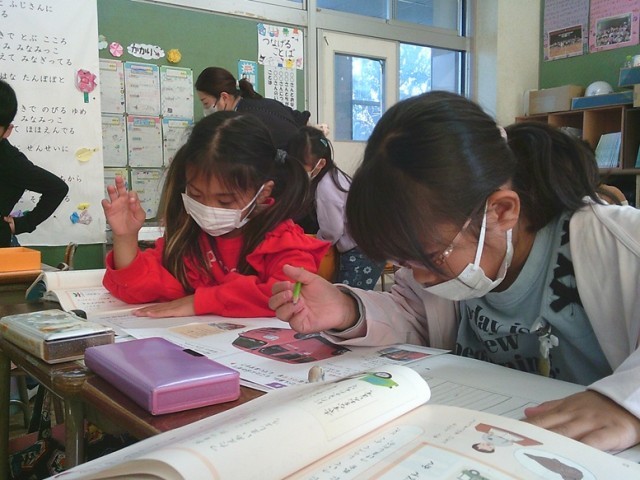 1年生の学習の様子です。インフルエンザが流行ってきており、校内でもマスク着用やうがい手洗いを呼びかけています。
