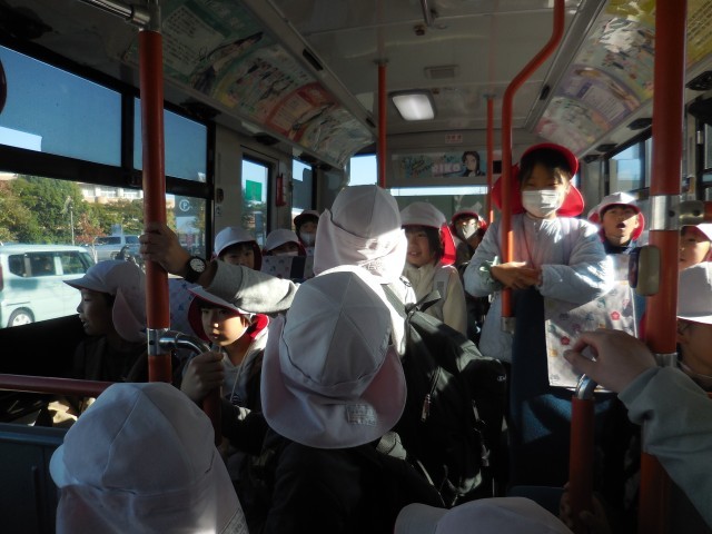 2年生は校外学習で楽寿園に行ってきました。最初にバスに乗り、沼津駅まで向かいました。バスの中ではマナーよく静かにしています。