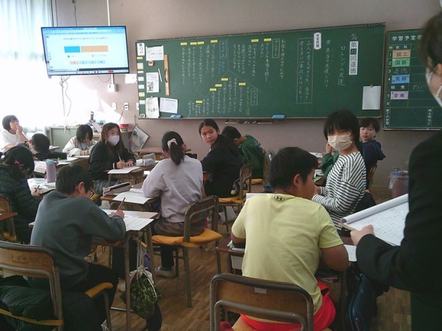 5年生の学習の様子です。3クラスとも落ち着いた雰囲気の中で学習を進めています。話し合い活動や協同学習を楽しんでいます。