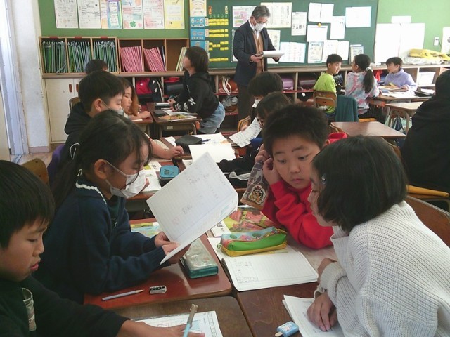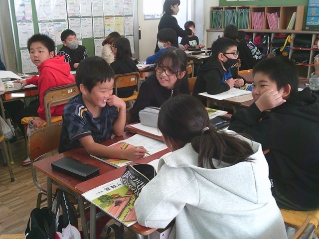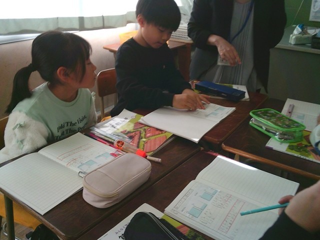 4年生の学習の様子です。両クラスとも課題に対して集中して取り組んでいました。自分の考えを友達に紹介しています。