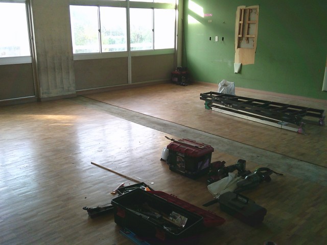 来年度より「ことばの教室」が大岡南小学校内に設置されことになりました。それに伴い、昨日から北校舎2階の教室を一部改築する工事が始まっています。