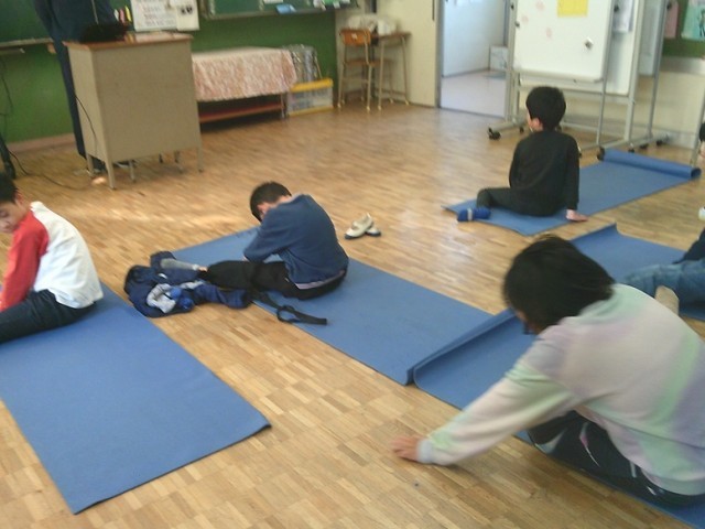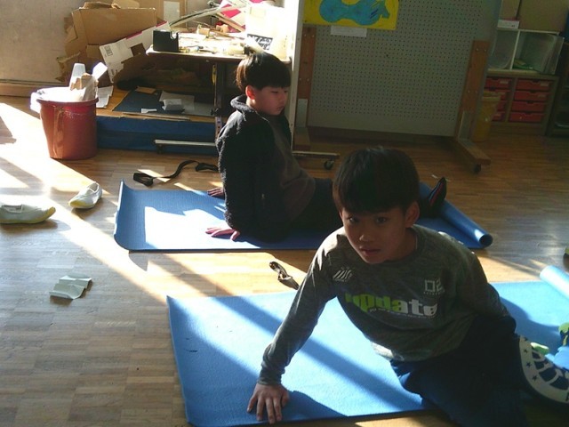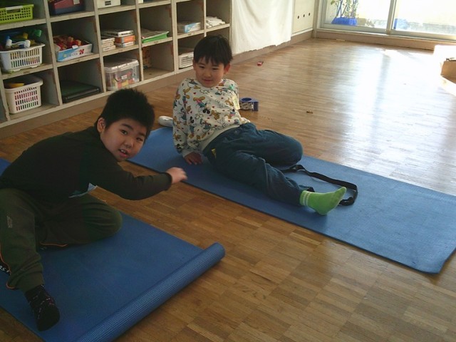 ききょう組の学習の様子です。両クラスでそれぞれ朝の運動に取り組んでいました。ストレッチをして、体を目覚めさせます。