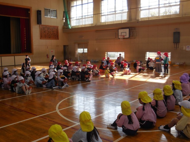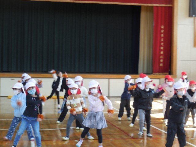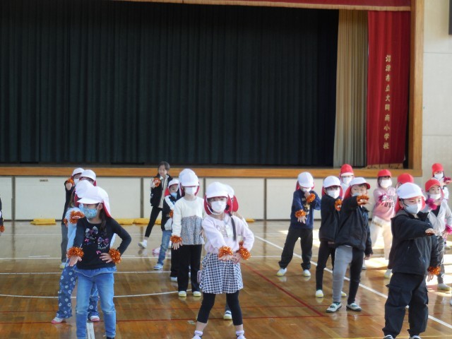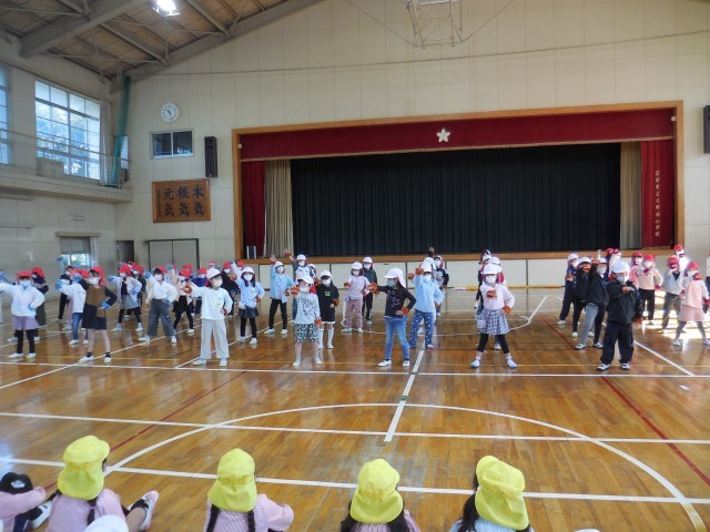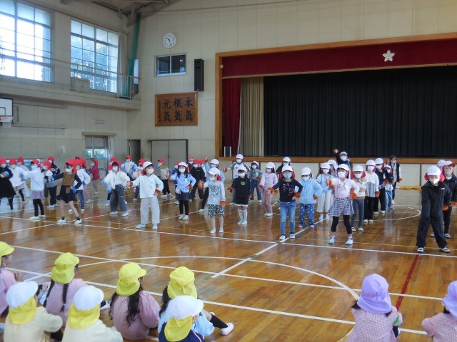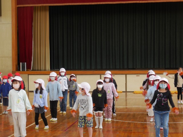 本日、1年生は耕雲寺幼稚園との交流会を行いました。1年生が秋みつけの中で見つけたどんぐりなどを使っておもちゃを作り、それを使って園児と活動を楽しみました。最初に1年生がダンスを披露しました。