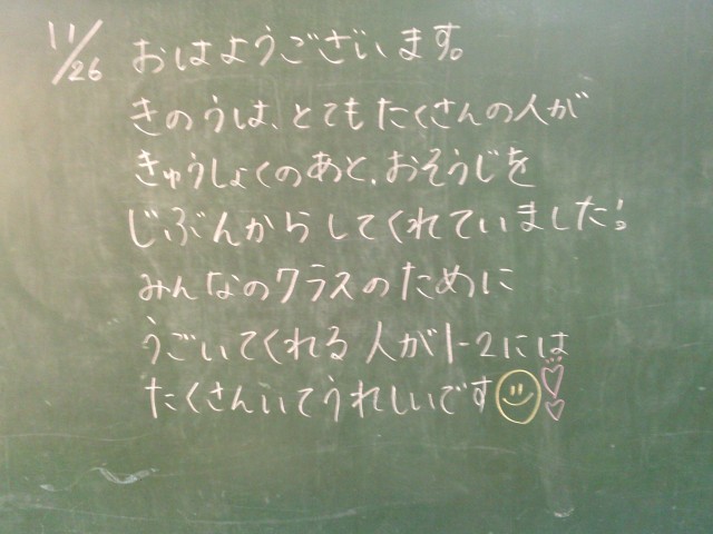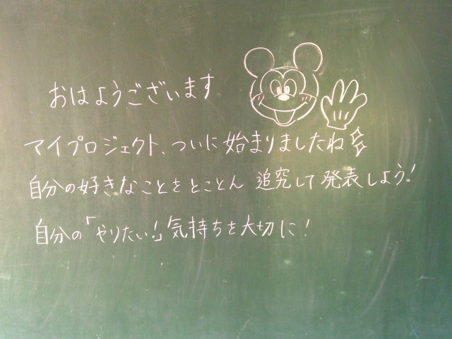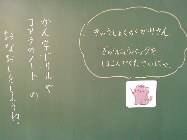 学級担任が黒板メッセージを用意して、子供たちの登校を待ちます。
