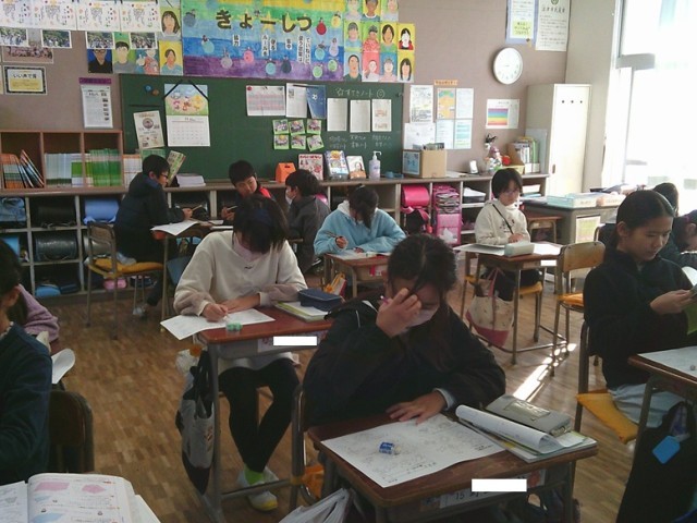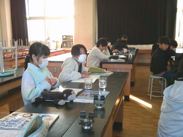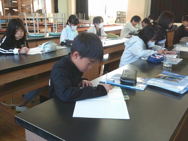 5年生の学習の様子です。理科では「ものの溶け方」について理解を深め、算数では演習問題に取り組んでいました。