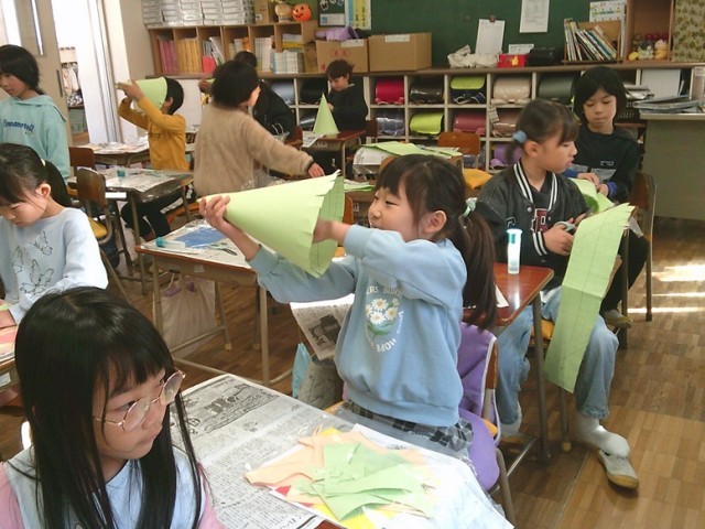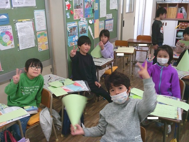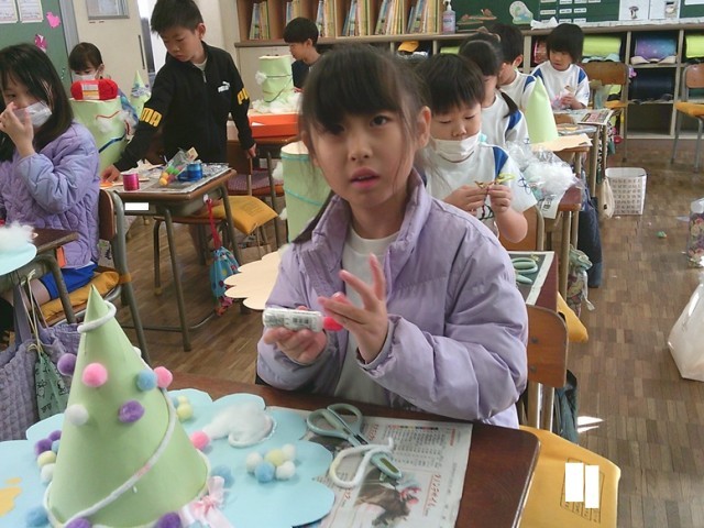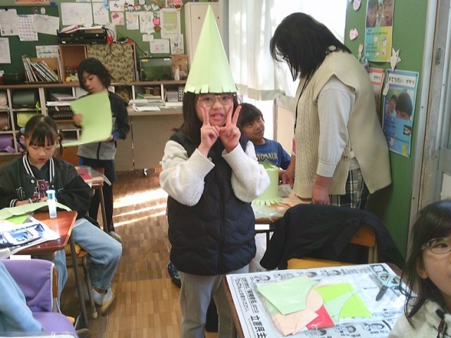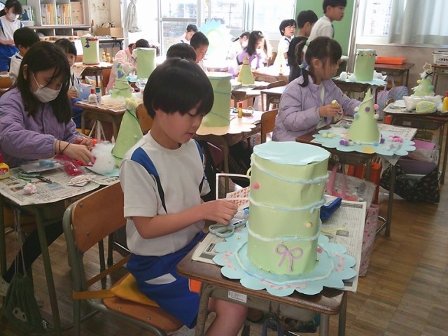 2年生は図工で「ふしぎなぼうし」制作を行っています。子供たちは、それぞれオリジナルの帽子を作り、そして飾り付けを楽しんでいました。
