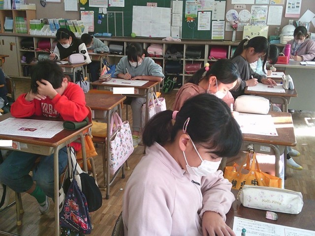 5年生の学習の様子です。3クラスとも落ち着いた雰囲気の中、学習を進めていました。2学期のまとめをしています。