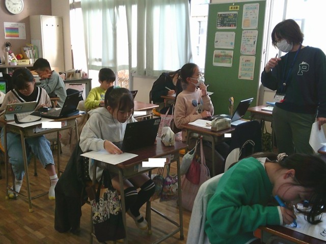 総合的な学習の時間において、「マイプロジェクト学習(個人総合)」を行っていました。自分が興味あるものを個人やグループで探究しています。