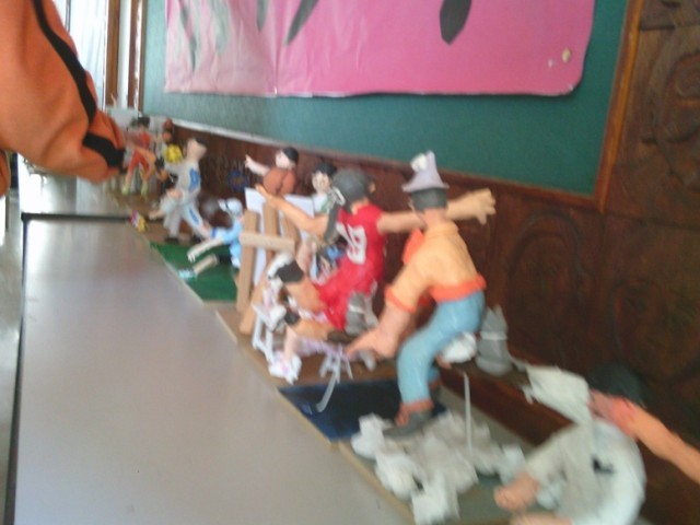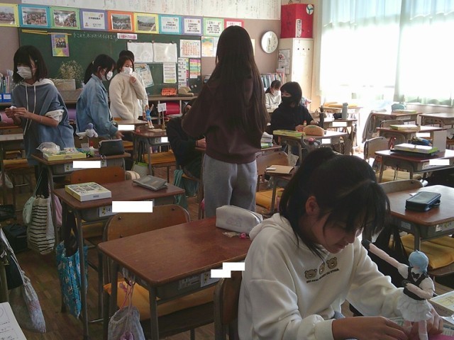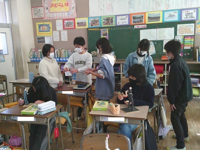 6年生の学習の様子です。図工では「将来のわたし」立体制作に取り組んでいました。自分の夢などを造形として表しています。