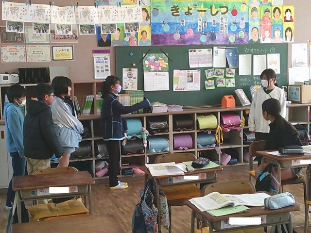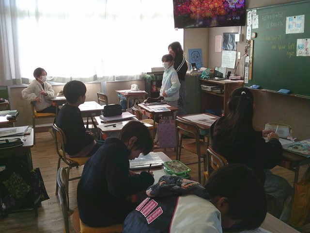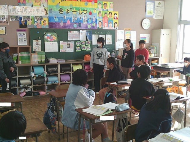 5年生の学習の様子です。3クラスとも落ち着いた雰囲気の中、学習を進めていました。理科では「ものの溶け方」について理解を深めました。道徳では、役割演技をしながら登場人物の心情について考えました。英語ではペア活動で英語での道案内をしていました。