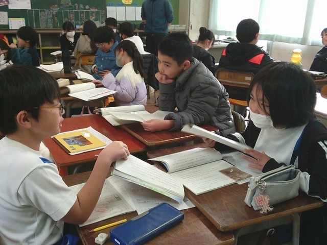 4年生の学習の様子です。両クラスとも友達と対話しながら活動を進めるスタイルで学習していました。自分とは違う新たな考えを取り入れることができます。