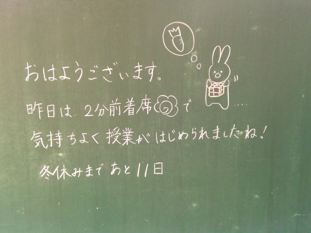 学級担任が黒板メッセージを用意して子供たちを迎えます。