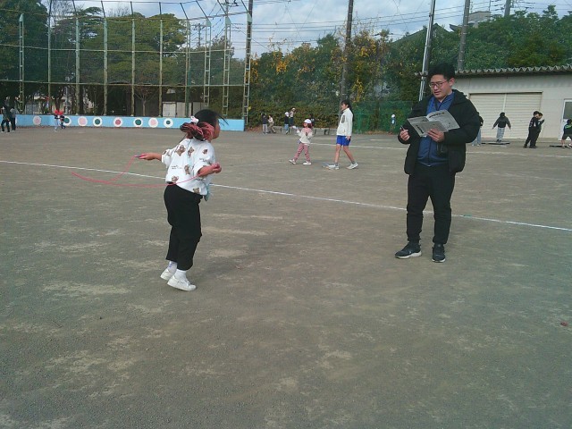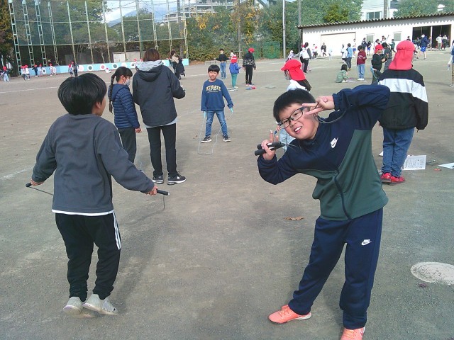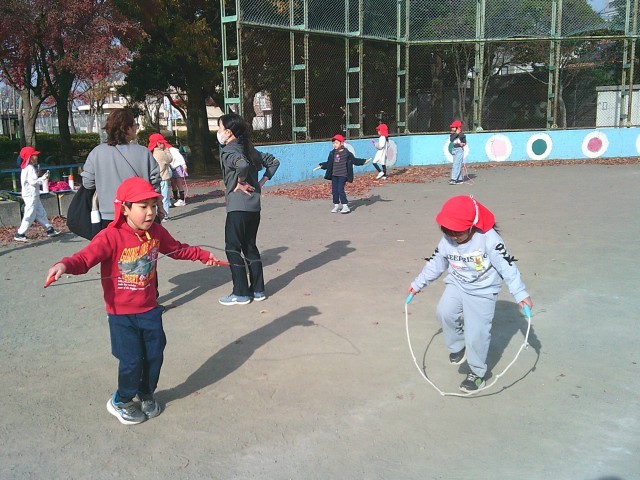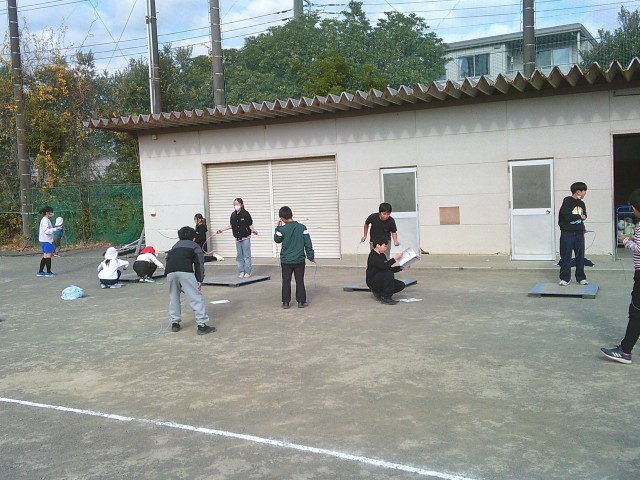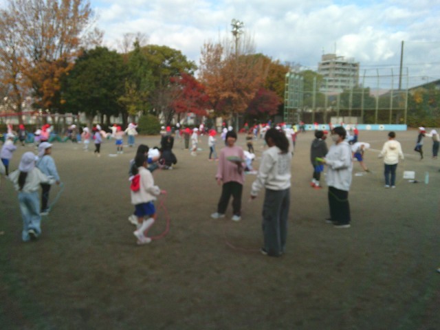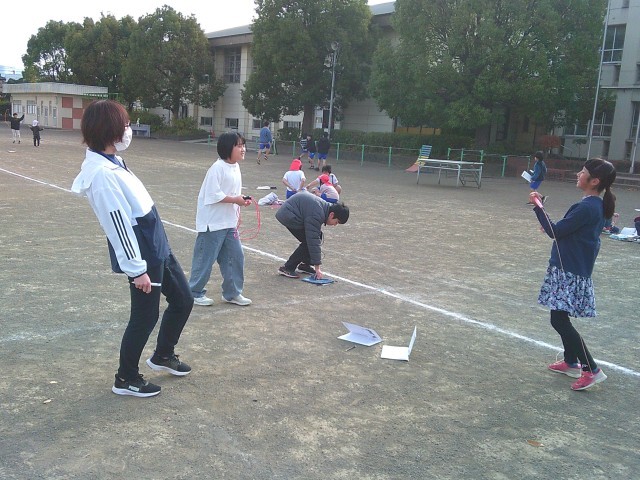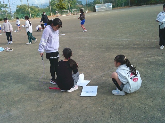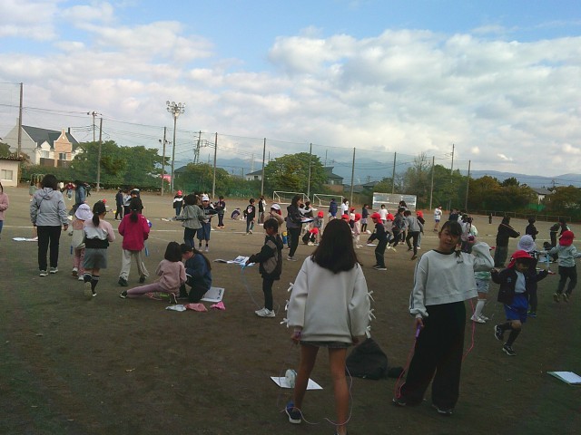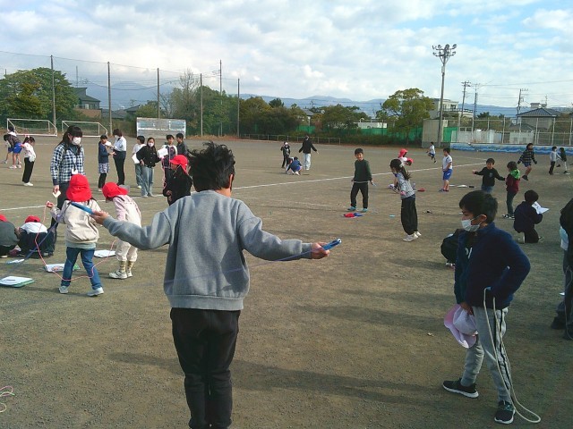 休み時間には、全校児童がなわとび運動を行っています。皆さん、自己記録の更新を目指して頑張ってください。