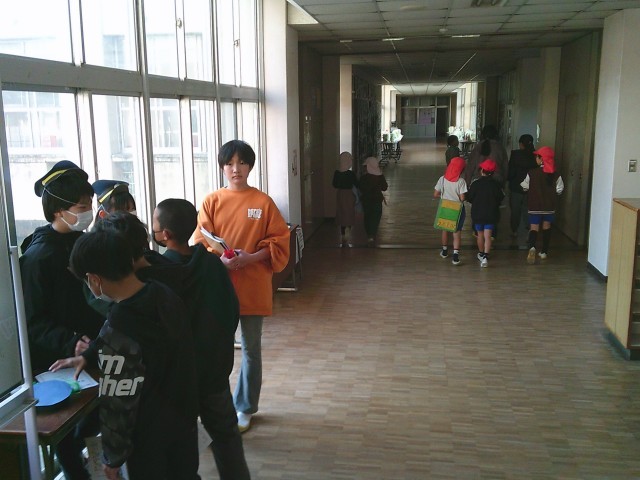 休み時間には、企画委員の児童が靴箱付近に立ち、あいさつ運動と共に子供たちの様子を見守っていました。