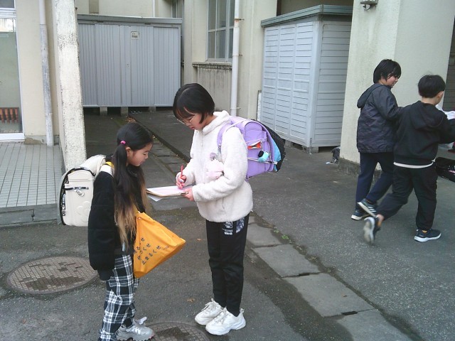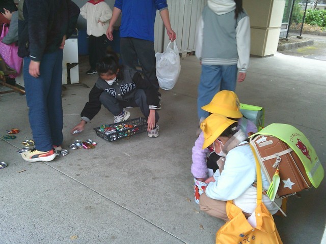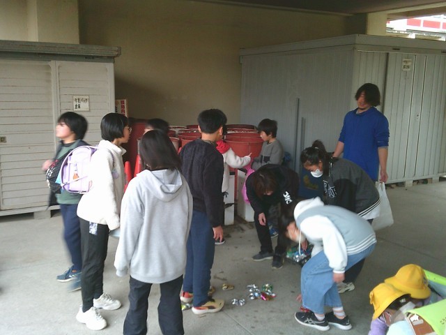 思いやり委員会の児童が空き缶回収を行っていました。今日も多くの子が自宅から空き缶を持ってきてくれました。ありがとうございました。