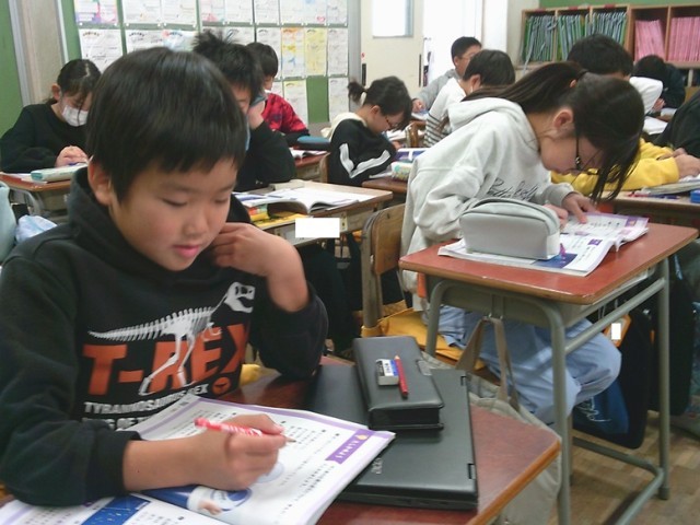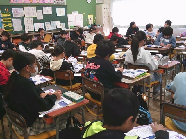 4年生の学習の様子です。両クラスとも意欲的に学ぶ姿が見られました。社会と理科の学習では、教科担任制として1組の教員が2組を、2組の教員が1組を学習支援しました。
