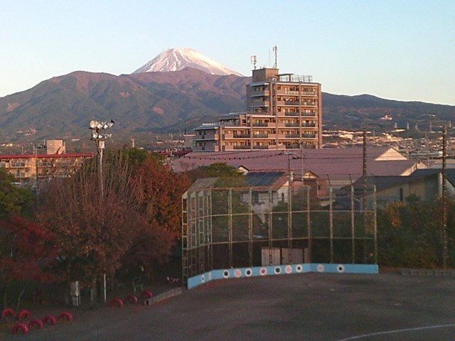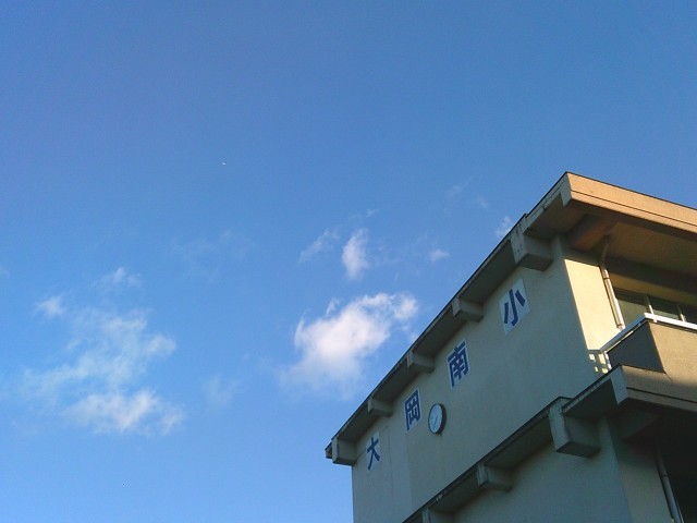 今朝の様子です。今日は快晴に一日です。本校の上空に飛行機が飛んでいました。
