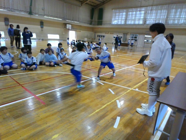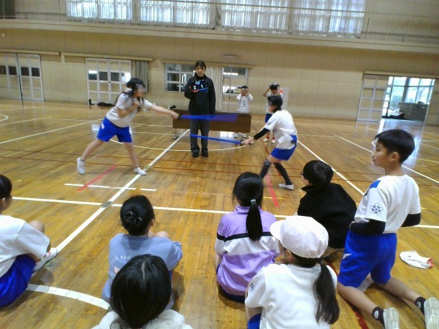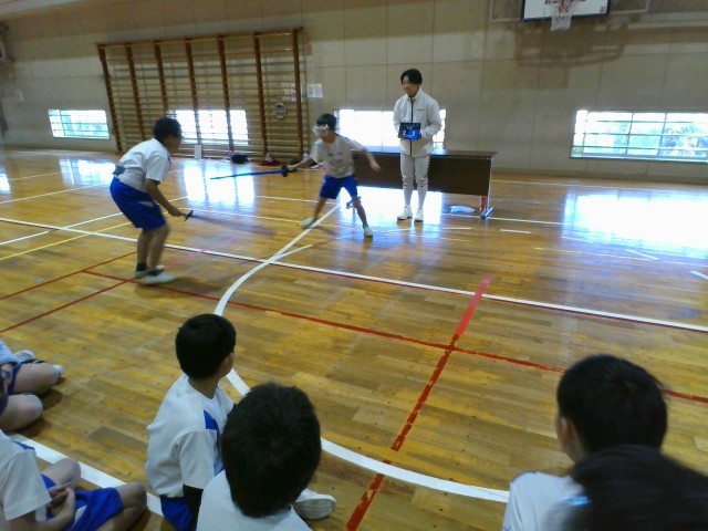 4年生がフェンシング教室を開催しました。3グループに分かれて、実際にスマートフェンシングを行っていました。脇田選手も子供たちのプレイを応援してくださいました。子供たちは楽しんで活動をしていました。